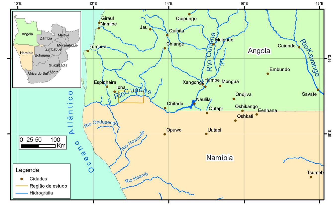 Área de Influência do Projecto estende-se por 152 km a partir das Quedas de Epupa até a foz no Oceano Atlântico, formando fronteira entre Angola e Namíbia.
